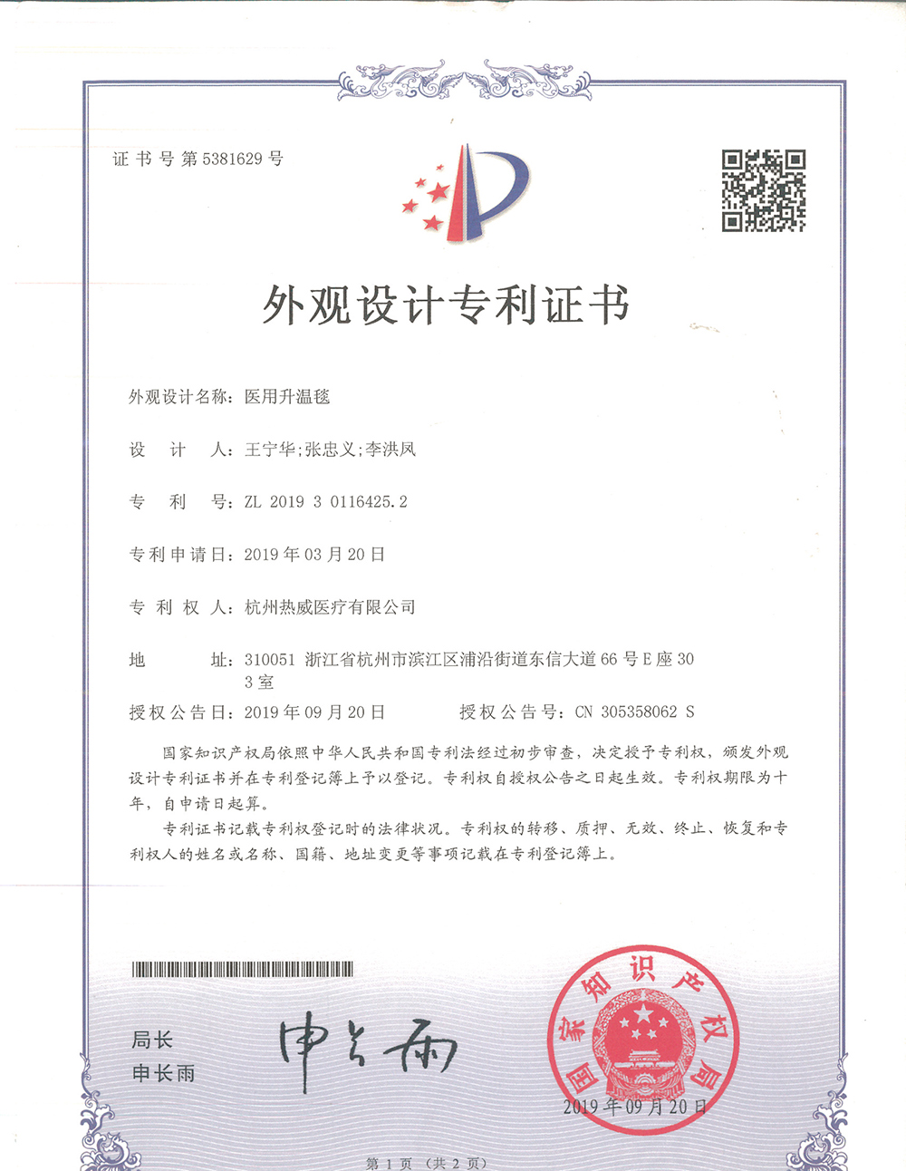 获得医用升温毯注册证